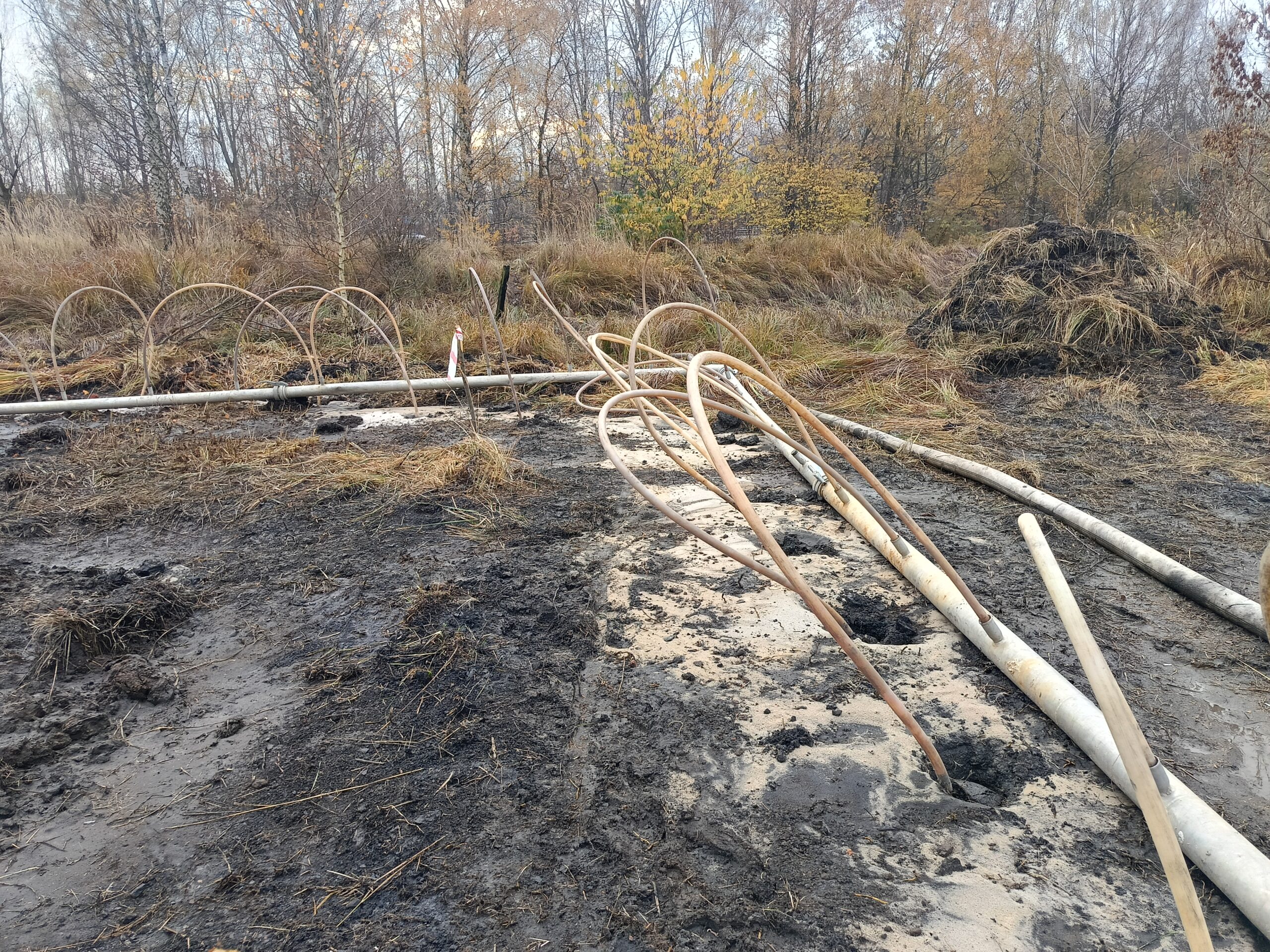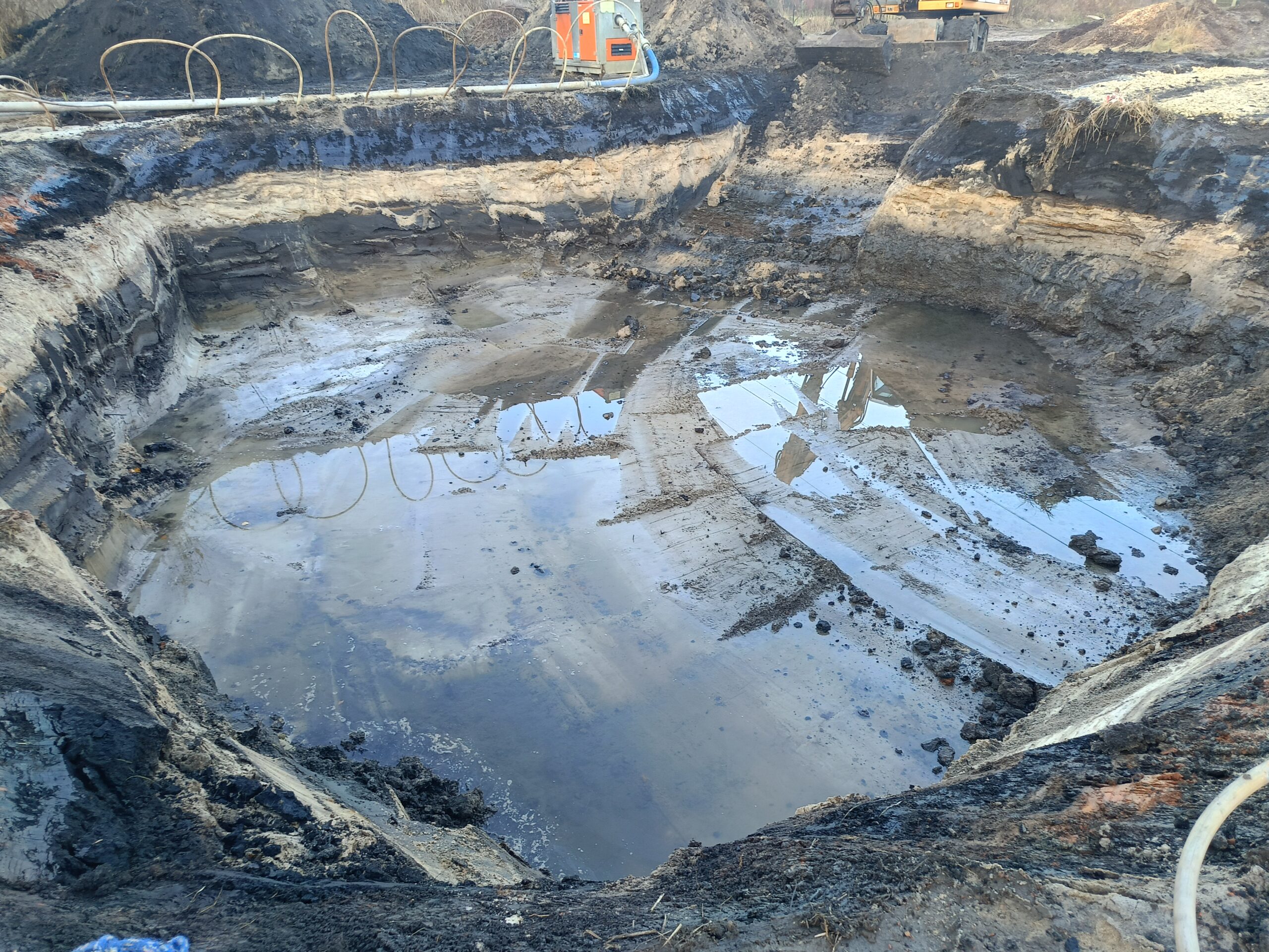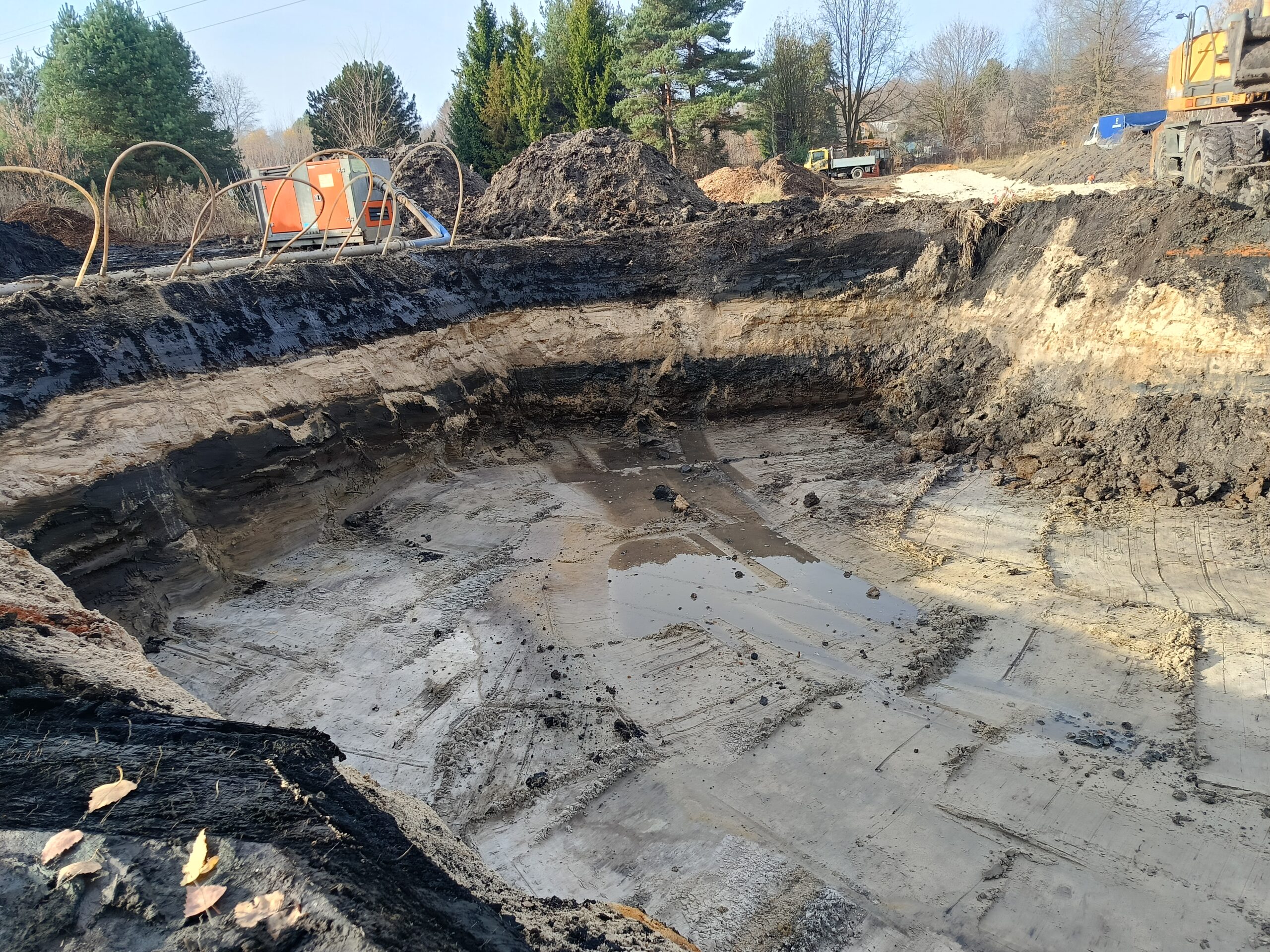 • Dojazd i Logistyka: Grząski teren wymusił pilną budowę utwardzonej drogi dojazdowej, kluczowej dla logistyki i bezpiecznego operowania ciężkim sprzętem.