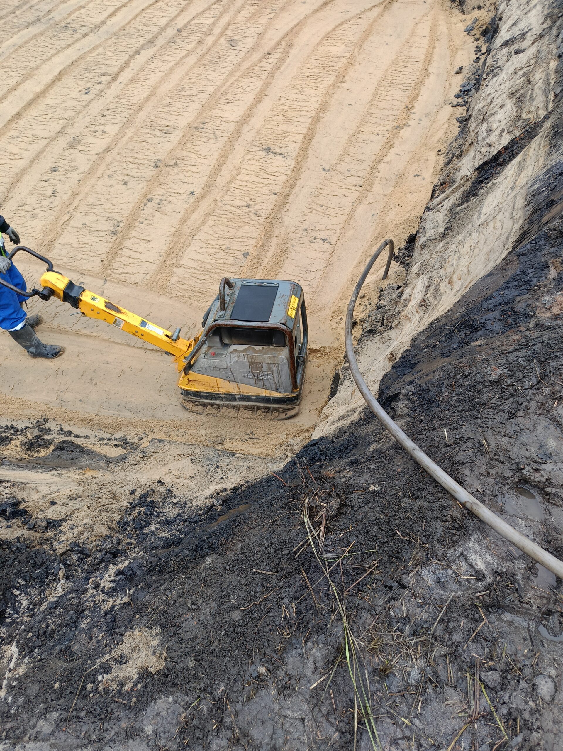 • Wymiana Gruntu: Konieczna była wymiana niestabilnego gruntu na lepsze podłoże, w tym celu wykorzystaliśmy 770 ton piasku zasypowego.